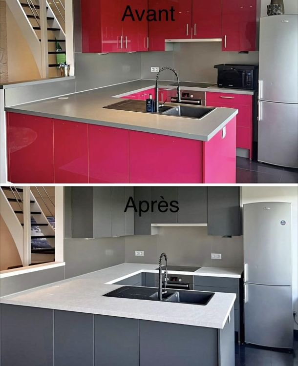 Cuisine marre de la couleur de votre cuisine? nous vous proposons plus de 500 cover différents. regardez ce beau projet avant-après